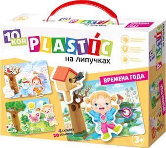 | Комплектация | • 4 карточки-основы (22х16 см) • 20 крупных деталей с липучками «велькро» |