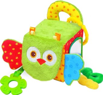 Развивающий кубик Сова любимая игрушка для дома и прогулок. Кубик Сова это яркий развивающий тренажер для вашего малыша. Красочное оформление и множество занимательных игровых элементов помогут сенсорному и эмоциональному развитию вашего малыша и подарят ему радость. Звуковые элементы стимулируют работу слуховых анализаторов. Забавный образ Совы и элементы игры обеспечивают эмоциональное развитие малыша. Малыш может потрогать ушки, помять хрустящую мордочку, позвенеть погремушкой, изучать разные материалы на ощупь плюш, хлопок, сетку, пластик, вышивку, улыбнуться себе в безопасное зеркальце, попробовать очень вкусные узелки, двигать пластиковую звездочку по мягкой ручке, погрызть колечко или звездочку, спрятать что-нибудь в карман сетку. Идеально подходит для развития мелкой моторики, слухового восприятия, зрительного восприятия, эмоционального комфорта, речевого развития. Мякиши идеально подходят для самых маленьких, поскольку у них нет острых углов.