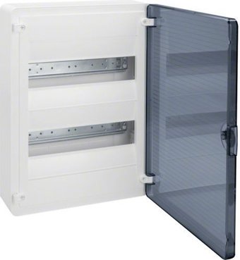 установка внутри помещения, монтаж навесной, материал щита (ящика): полистирол, 24 модулей, 2 рейки, номинальное напряжение 400 В, номинальный ток 63, степень защиты IP40, ВхШхГ: 37.7x28.2x9.9 см
