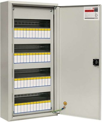 установка внутри помещения, монтаж навесной, материал щита (ящика): металл, 48 модулей, 4 рейки, степень защиты IP31, ВхШхГ: 60x30x12.5 см