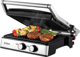 Описание ✅ Электрогриль КТ-3601 предназначен для приготовления различных блюд: мяса, рыбы, овощей, сосисок, бутербродов, панини, сэндвичей, гренок, тостов и других. | |