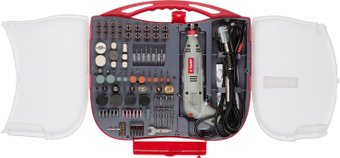 | Комплектация | Гравер электрический Цанга - 4 шт.: 1.6, 2.4, 2.8, 3.2 мм Гибкий вал - 1 шт.: 105см Круг шлифовальный 10 шт.: 12мм Войлочный полировальный круг - 1 Фетровый полировальный круг 3 шт.: 10мм Державка для фетровых кругов Резиновый полировальный круг - 1 шт.: 20мм Сверло по металлу - 6 Державка для шлифовальных цилиндров - 2 Шарошка с алмазным напылением - 7 Шарошка металлическая - 3 Абразивный шлифовальный круг по металлу с хвостовиком 2 шт.: 12мм Абразивный шлифовальный круг по металлу - 6 шт.: 20мм Абразивный шлифовальный круг по камню с хвостовиком 2 шт.: 10мм Абразивный шлифовальный круг по камню - 6 шт.: 20мм Щетка-крацовка - 9 Шлифовальный круг 45 шт.: 24мм Усиленный отрезной абразивный круг - 30 шт.: 24мм Отрезной абразивный круг - 46 шт.: 24мм Отрезной армированный круг - 5 шт.: 32мм Оправы - 4 шт.: 3,2мм Ключ гаечный Брусок абразивный правочный Лепестковый торцевой круг - 1 шт.: 32мм, Р80 |