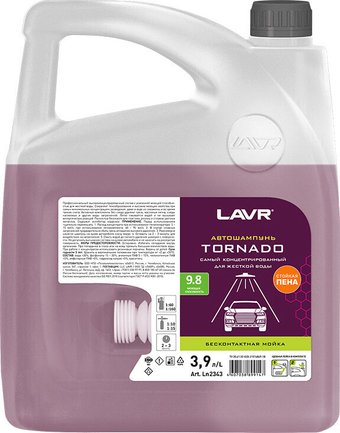 Описание Автошампунь для бесконтактной мойки TORNАDO LAVR – профессиональный высококонцентрированный состав для очистки внешних поверхностей автомобилей, мотоциклов, велосипедов и т.д. Средство с усиленной моющей способностью для жесткой воды. Сохраняет высокие моющие свойства даже при минимальных концентрациях разведения. Формула безопасна для поверхностей кузова. | |