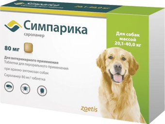 | Особенности применения | Жевательная таблетка, защищает собак от блох и клещей, можно использовать в любое время года, дается один раз перорально. |