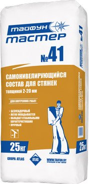 Описание Cамонивелирующийся состав для стяжек «Тайфун Мастер» №41 применяется для высококачественного выравнивания и корректировки минеральных оснований под различного вида напольные покрытия. | |