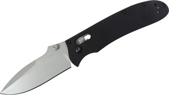 Вообще, этот нож является точной китайской копией гораздо более дорогого американского ножа от Benchmade, поэтому по эргономике всё отлично! Очень удобно лежит в руке, имеет на лезвии большой и цепкий упор для большого пальца, подойдёт и под маленькую и под большую руку, так как углубление на рукоятке есть только под один (указательный) палец.