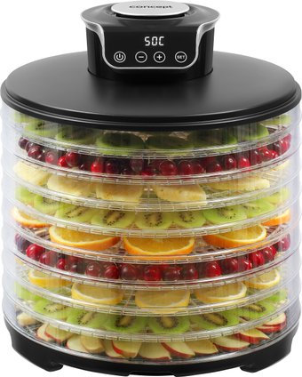 Описание ✅ Сушилка для фруктов Concept SO3010 предлагает 9 прозрачных лотков, что позволяет одновременно сушить большое количество овощей и фруктов. Сенсорный дисплей с цифровым управлением делает процесс максимально удобным и интуитивно понятным. | |
