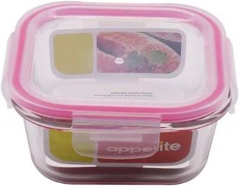 для хранения пищевых продуктов, 800 мл, ширина 150 мм, высота 65 мм, стекло, 1 емкость/отделение, цвет: прозрачный/розовый