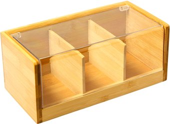 для хранения пищевых продуктов, ширина 220 мм, высота 95 мм, дерево, 3 емкости/отделения, цвет: под дерево/прозрачный