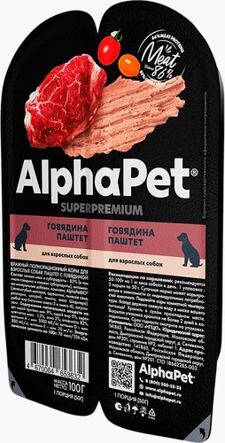 Описание ✅ Влажный полнорационный корм для взрослых собак паштет с говядиной AlphaPet Superpremium. | |