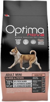 | Ингредиенты | Свежее мясо лосося (40%). Дегидрированное мясо лосося (25%). Картофель (15%). Картофельный белок. Масла и жиры. Гидролизат лосося (5%). Дрожжи. Свекольный жом. Полифосфат натрия. Калия хлорид. Натрия хлорид. Инулин (1,000 мг/кг - FOS). Имбирь (1,000 мг/кг). Мананоолигосахариды (260 мг/кг). Экстракт юкки Шидигера. |