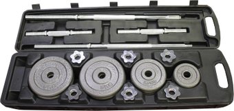 набор гантелей с грифом для штанги, 2 шт., вес снаряда 2.4 кг, конструкция: разборная, посадочный 30 мм, длина 160 см