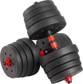 набор гантелей с грифом для штанги, 2 шт., вес снаряда 15 кг, конструкция: разборная, посадочный 25 мм, длина 40 см