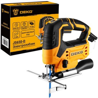 рукоятка-скоба, питание: сеть, 650 Вт, глубина пропила: 75 мм (дерево), 6 мм (сталь), 800–3000 ходов/мин