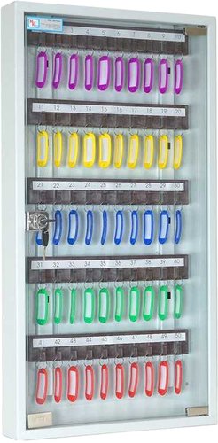 Описание Ключница КЛ-50С предназначена для хранения 50 комплектов ключей. Лицевая панель — стекло мебельное. На задней стенке корпуса расположены отверстия для крепления. Ключница комплектуется 5 планками под навеску ключей. В дверь установлен замок типа «Cam-Lock». | |