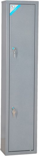 Описание Шкаф односекционный соответствует всем требованиям МВД России. Корпус шкафа толщиной 1 мм, дверь толщиной 1 мм. На задней стенке корпуса расположены отверстия для крепления. Шкаф оружейный «Меткон» ОШН-2 на 2 ствола оснащен съемной полкой. Ложементы — пластик. В дверь установлены 2 замка типа «Cam-Lock». | |