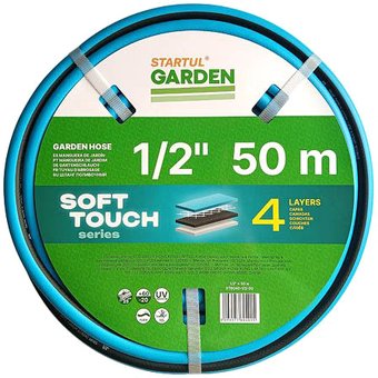 стандартный, ПВХ, армированный, гладкая поверхность, диаметр 12.5 мм, длина 50 м, голубой