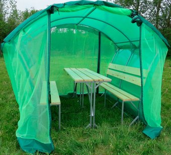 металлический каркас, прямоугольная, скамья, стол, крыша поликарбонат, стены поликарбонат, настил пола: нет, 2x2.3 м