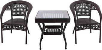 стол + 2 стула, стол: 640×640×630 мм, основание - искусственный ротанг, столешница - стекло, сиденье: 450×600 мм, материал: искусственный ротанг