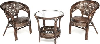 стол + 2 кресла, стол: 640×640×610 мм, основание - ротанг, столешница - стекло, сиденье: 660×650 мм, материал: ротанг
