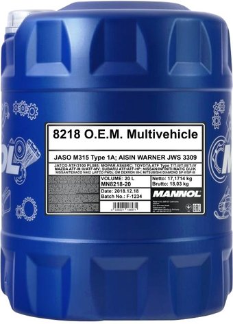 | Спецификации и допуски | AISIN WARNER JWS 3309 JASO M315 Type 1A JATCO ATF JATCO 3100 PL085 TOYOTA ATF Type T/T-II/T-III/T-IV NISSAN/INFINITI MATIC D/J/K NISSAN/TEXACO N402 (JATCO FWD) MITSUBISHI DIAMOND SP-II / SP-III MAZDA ATF-M III / ATF-MV DAIHATSU ALUMIX ATF MULTI HONDA ATF-Z1 (not for CVT) / ATF DW-1 SUZUKI 3314, 3317, 2384K SUZUKI ATF OIL /ATF OIL SPECIAL SUBARU ATF / ATF-HP HYUNDAI/KIA SP-II / SP-III IDEMITSU K17-Jaguar X Type 2001-2005 MOPAR AS68RC GM DEXRON IID/IIE/IIIF/IIIG/IIIH CHRYSLER ATF +3/+4 VW/AUDI G 052 025-A2 / G 052 162-A1 VW/AUDI G 052 990-A1/A2 / G 055 025-A1/A2 BMW 7045E (3 Series) BMW ETL-8072B (5 Series) BMW LA2634 / LT71141 (ZF 5 Speed) MB 236.1/.2/.3/.5/.6/.7/.9/.10/.11 PORSCHE JWS 3309 VOLVO 97340 / 97341 VOITH 55.6335.XX (G607) ALLISON C-4 ZF TE-ML 03D/04D/11B/14A/14B/16L/17 FORD MERCON V, FNR5 MAN 339F/V1/V2/Z1/Z2 |