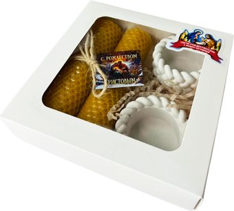 на Новый год и Рождество, содержание набора: два плетёных подсвечника; две свечи из вощины