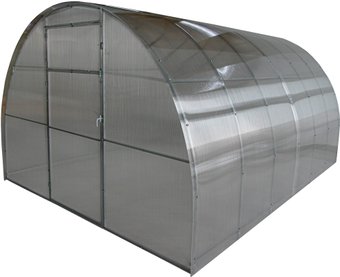 теплица 4x3 м, арочная форма, каркас: оцинкованная труба, покрытие: сотовый поликарбонат, нагрузка до 180 кг/м², между дугами 1 м