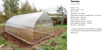 Описание ✅ Теплица СпецПрофРесурс SPR 40А имеет длину 8 метров. Шаг между дугами составляет 0,67 метра, а трубы дуг имеют размеры 40 х 20 мм. Трубы для начинки торцов и соединителей имеют размеры 20 х 20 мм. Ширина торца составляет 3 000 мм, а высота - 2 000 мм. Дверной проем имеет ширину 910 мм и высоту 1 810 мм. Также в теплице есть форточка размером 410 х 860 мм. | |