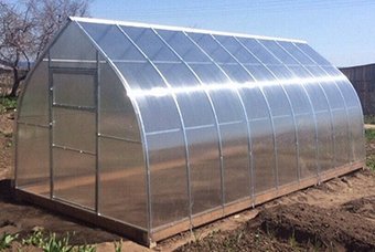 теплица 4x3 м, стреловидная форма, каркас: оцинкованная труба, покрытие: сотовый поликарбонат, между дугами 0.65 м