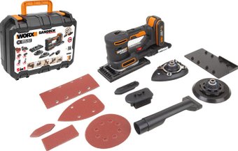Описание Благодаря 5-ти сменным подошвам, шлифовальную машину можно использовать для обработки ровных и изогнутых поверхностей. WORX WX820 может применяться в качестве дельты, вибрационной или эксцентриковой шлифовальной машины. | |
