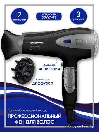 2200 Вт, ионизация, независимая регулировка температуры, шнур 1.8 м, серый/черный