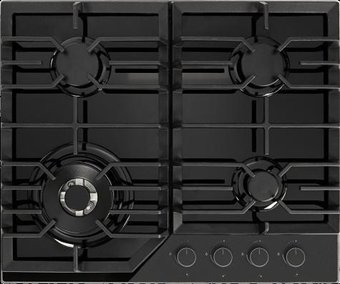 газовая на 4 конфорки, закаленное стекло, автоматический электроподжиг, газ-контроль, решетки: чугун, независимая установка, размеры (ШхГ): 61x51 см