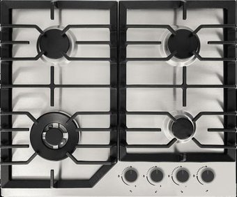 газовая на 4 конфорки, нержавеющая сталь, автоматический электроподжиг, газ-контроль, решетки: чугун, независимая установка, размеры (ШхГ): 61x51 см