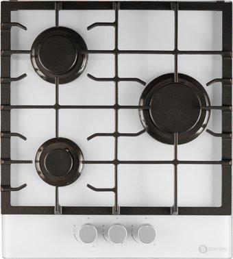 газовая на 3 конфорки, закаленное стекло, мощность: 5180 Вт, автоматический электроподжиг, газ-контроль, решетки: чугун, независимая установка, размеры (ШхГ): 45.5x51 см