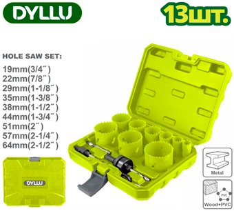 пильная коронка, 9 шт, центрирующее сверло, рабочий диаметр 19 мм/22 мм/29 мм/35 мм/38 мм/44 мм/51 мм/57 мм/64 мм