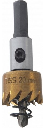биметаллическая коронка, центрирующее сверло, металл, рабочий диаметр 20 мм, рабочая длина 9 мм