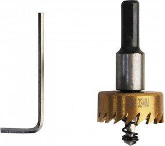 биметаллическая коронка, центрирующее сверло, металл, рабочий диаметр 32 мм, рабочая длина 9 мм