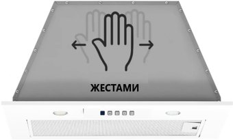 конструкция скрытая, монтаж для встраивания, ширина 53 см, управление электронное/кнопочное/жестами/дистанционное, производительность мотора 1250 м³/ч, цвет белый