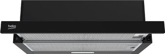 конструкция телескопическая, монтаж для встраивания, ширина 59.8 см, управление механическое/кнопочное, производительность мотора 320 м³/ч, цвет черный