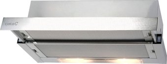 конструкция телескопическая, монтаж для встраивания, ширина 60 см, управление механическое/кнопочное, производительность вытяжки 340 м³/ч, производительность мотора 600 м³/ч, цвет нержавеющая сталь