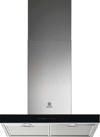 конструкция Т-образная, монтаж настенный, ширина 59.8 см, управление сенсорное, производительность вытяжки 615 м³/ч, цвет нержавеющая сталь/черный