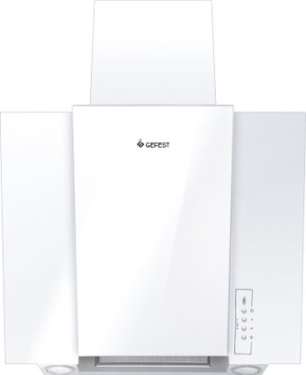 конструкция наклонная, монтаж настенный, ширина 50 см, управление электронное/кнопочное, производительность вытяжки 550 м³/ч, цвет белый