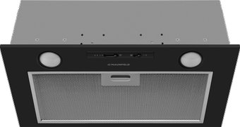 конструкция скрытая, монтаж для встраивания, ширина 49.8 см, управление механическое/слайдерное, производительность мотора 850 м³/ч, цвет черный