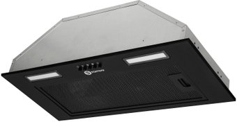 конструкция скрытая, монтаж для встраивания, ширина 59.8 см, управление механическое/кнопочное, производительность мотора 750 м³/ч, цвет черный