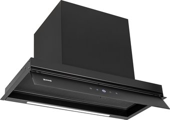 конструкция скрытая, монтаж для встраивания, ширина 59.5 см, управление сенсорное, производительность мотора 1280 м³/ч, цвет черный