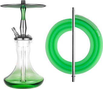 кальян-палка, 35 см, разборный, материал шахты нержавеющая сталь, соединение шахты и колбы уплотнитель, цвет шахты зеленый/хром, цвет колбы зеленый/прозрачный, цвет шланга зеленый