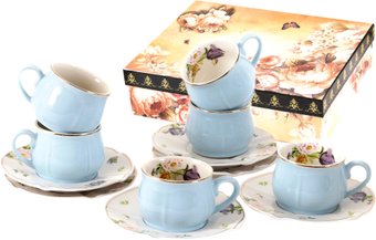 чашка с блюдцем на 6 персон, для кофе/для чая, 100 мл, керамика, цвет: белый/голубой