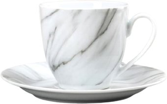чашка с блюдцем на 1 персону, универсальное, 200 мл, керамика, цвет: белый/серый