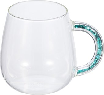 кружка, для чая/для кофе, 450 мл, стекло, цвет: прозрачный/синий