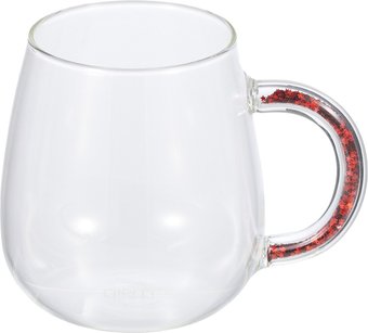 кружка, для чая/для кофе, 450 мл, стекло, цвет: прозрачный/красный